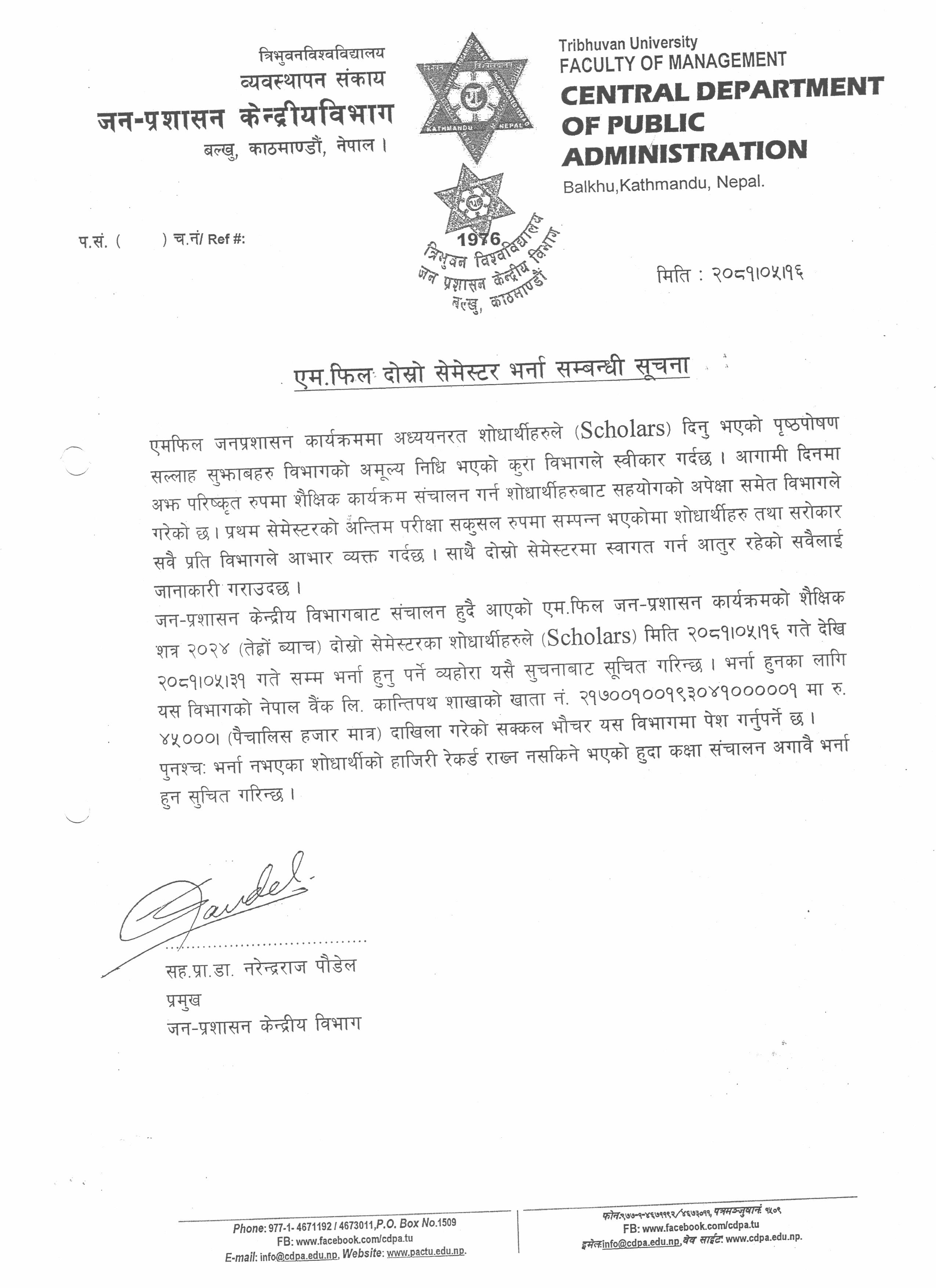 एमफिल दोर्सो सत्रको भर्ना सम्बन्धि सूचना