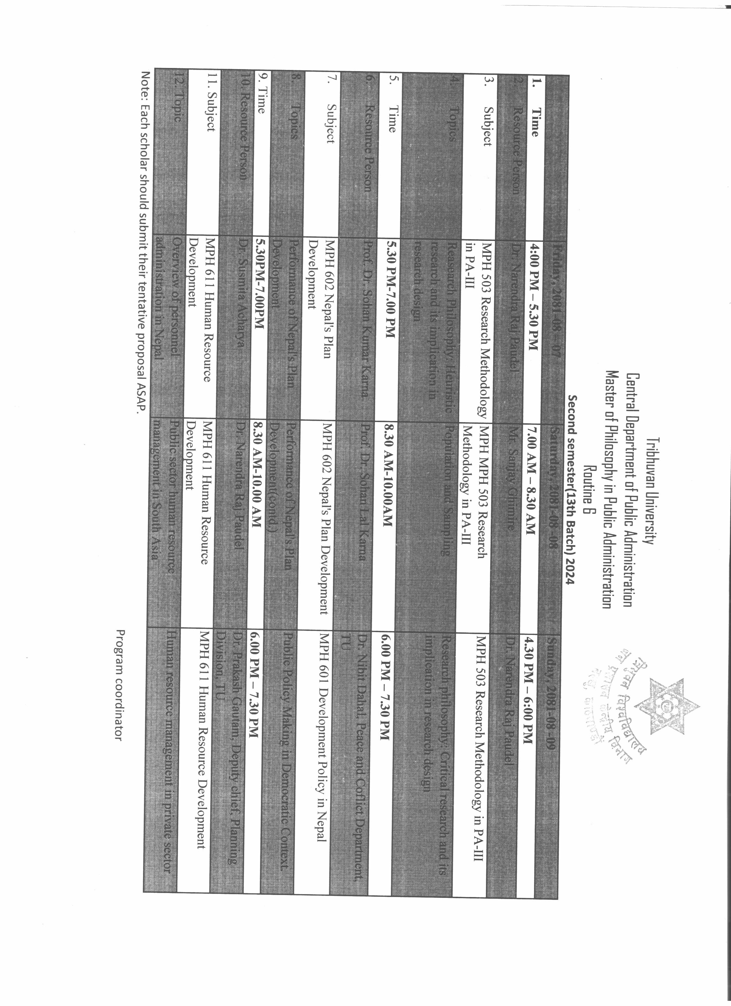 Second Semester Class Routine 6