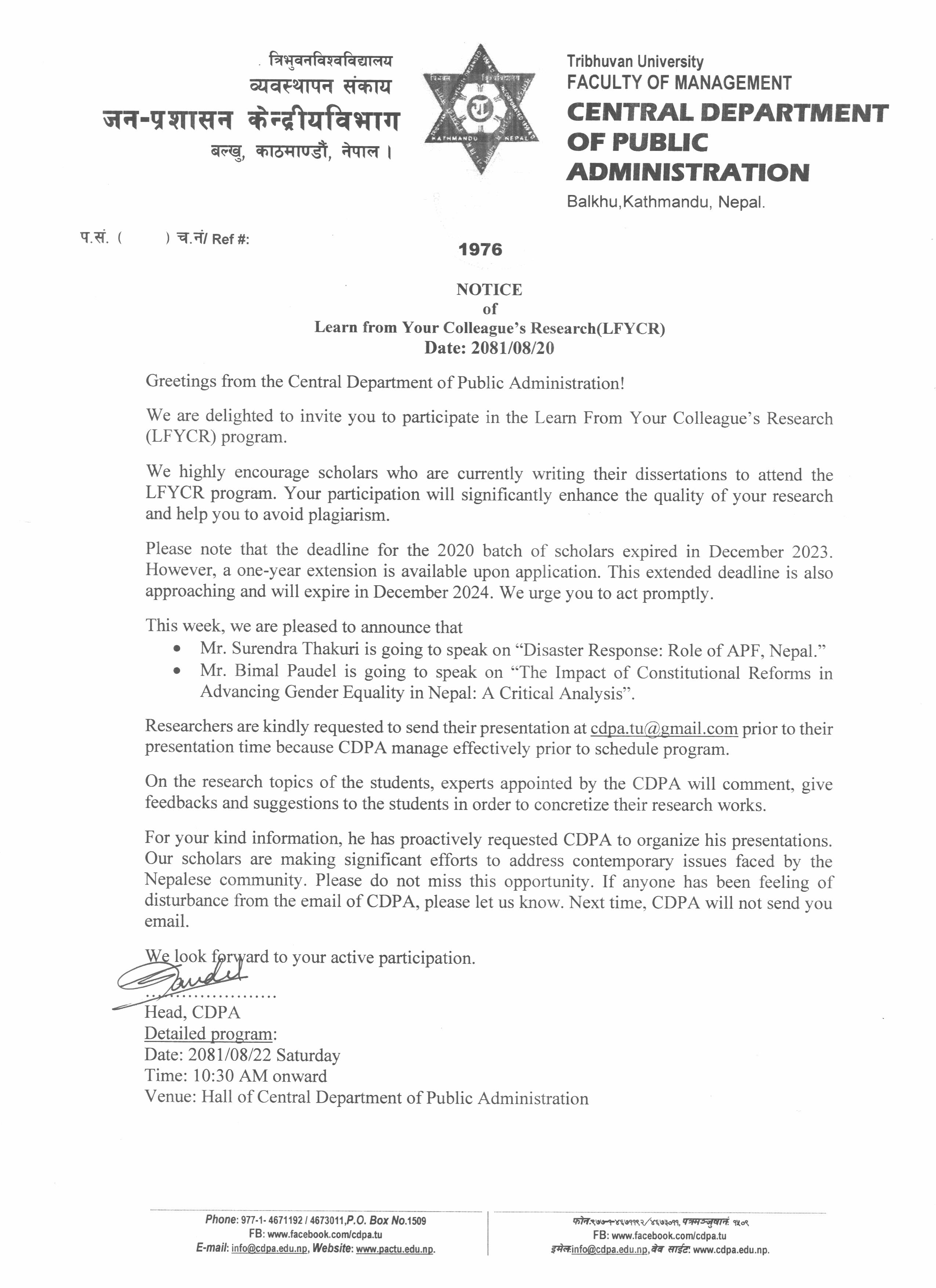 एमफिल को छुट शोधपत्र बुझाउने सम्बन्धी सूचना